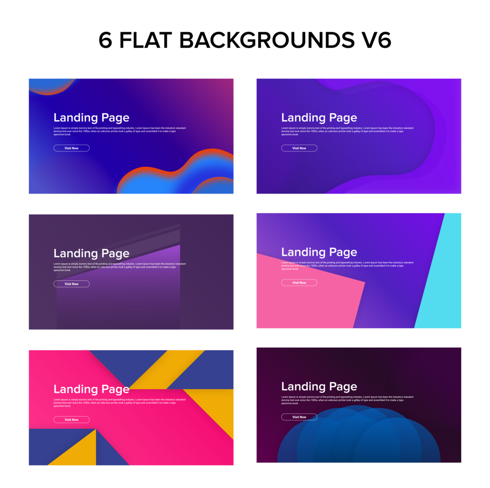6 Flat Backgrounds Landing Page background Pack Bundle XD FULL HD (XD, PNG & JPEG) Editable